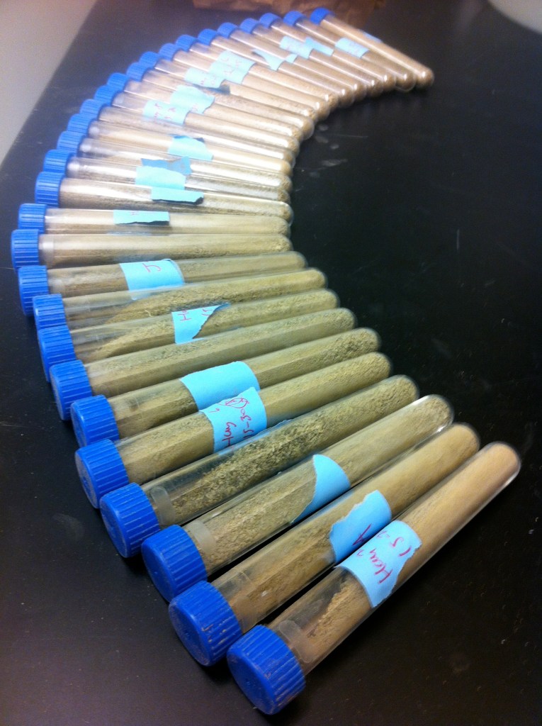Although the willow plots were deserted in 2011 after apparently demonstrating less-than-satisfactory results at the biomass gasification plant, I wanted to study the plots to distinguish between bioenergy crops that were optimal for the purposes of energy yield vs. the purposes of carbon mitigation — particularly through the storage of carbon over time in the soil, which is influenced by a number of actors such as the type of biomass growing in the soil, and historic and current land management practices. Long-term soil carbon storage is often what tips the scale towards bioenergy crops being considered carbon negative energy sources.