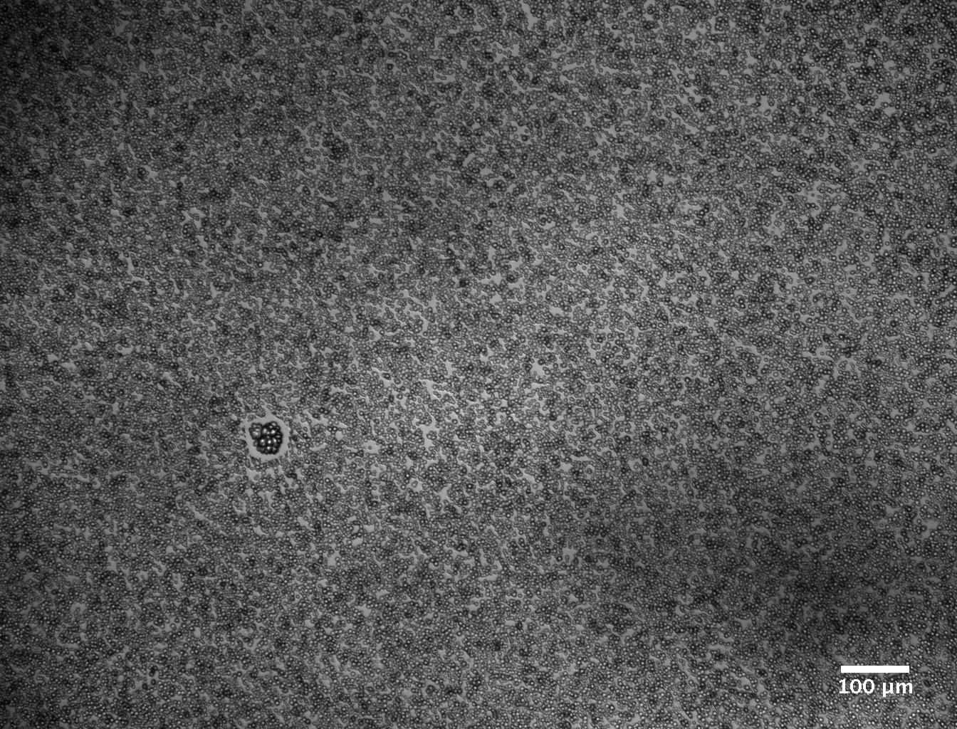 Here’s a representative bright-field optical microscopy image of calcium carbonate crystal formation after 24 hours under a standard set of ambient conditions: